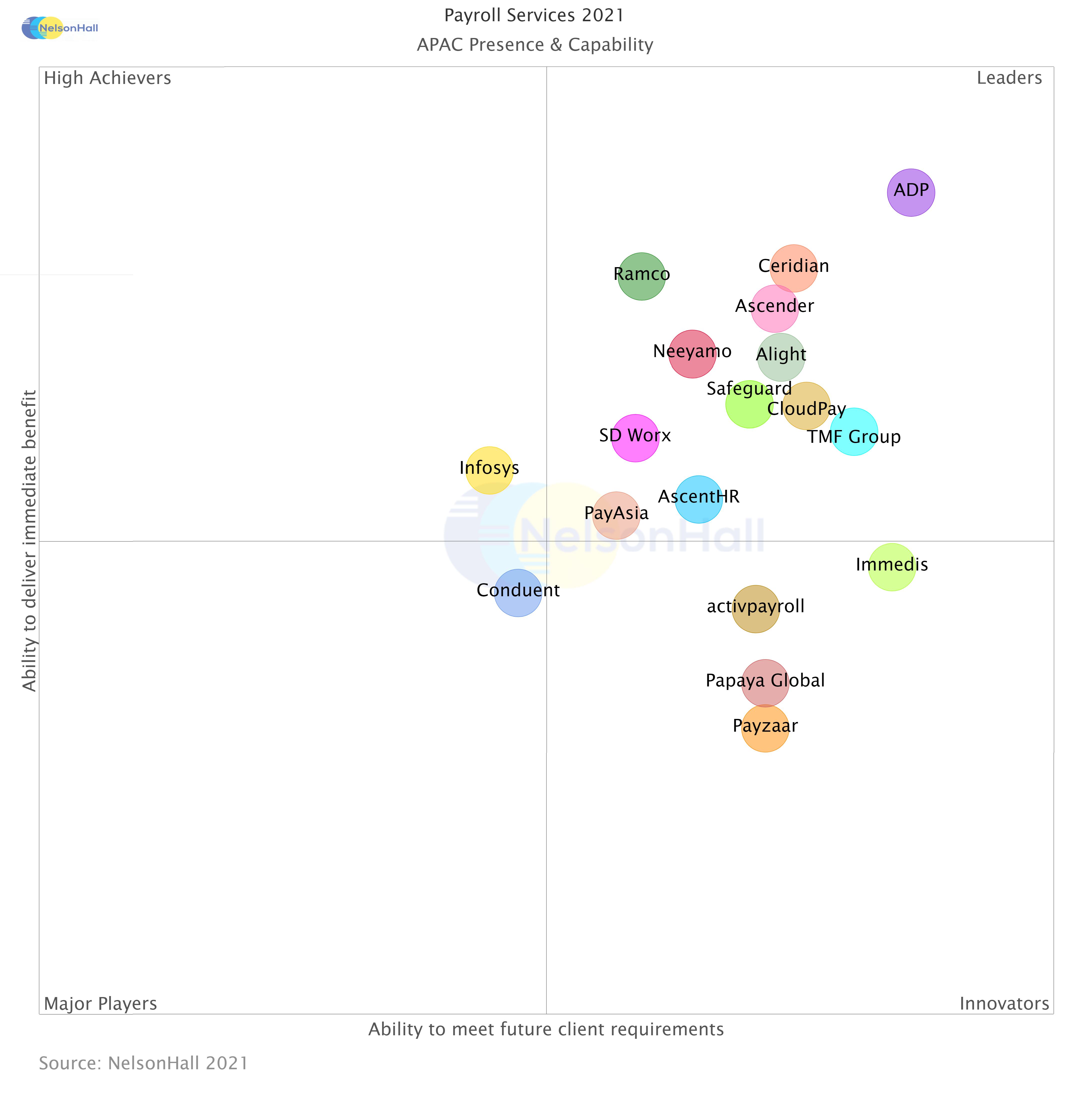 Este ano, a NelsonHall identificou a ADP como líder em todos os três gráficos NEAT: